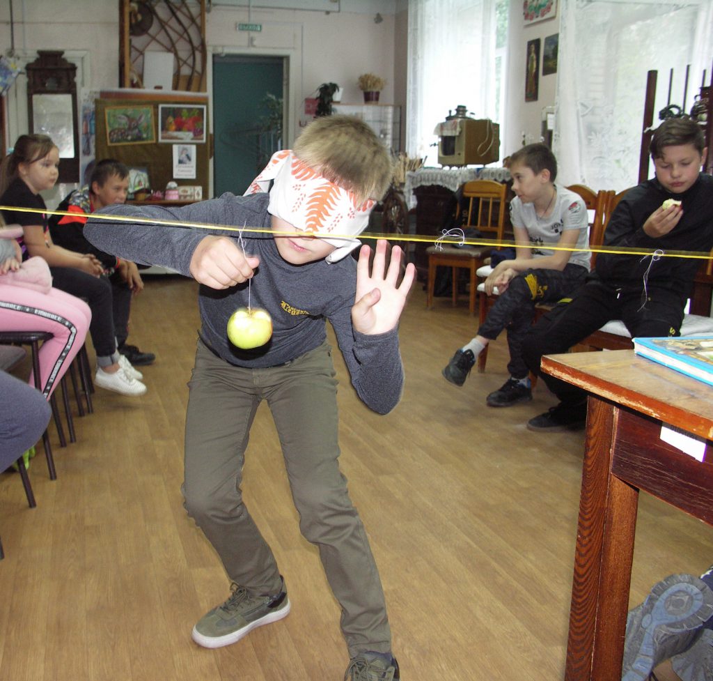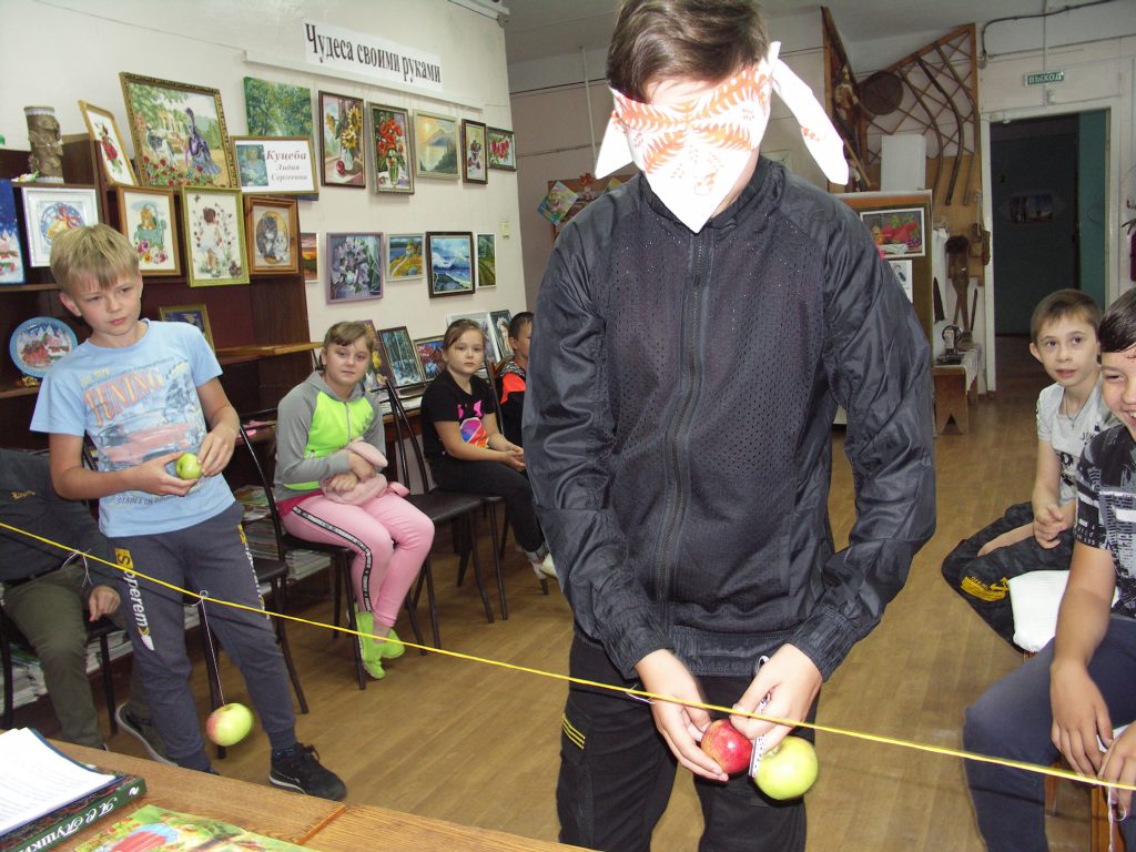 Отдавая дань народным традициям празднования Яблочного Спаса, в библиотеке прошли весёлые игры и конкурсы. Дети активно участвовали в «Яблочной эстафете», исполняли танцевальные движения с яблоком на голове, с завязанными глазами ели яблоки и собирали их с «верёвочного» дерева.