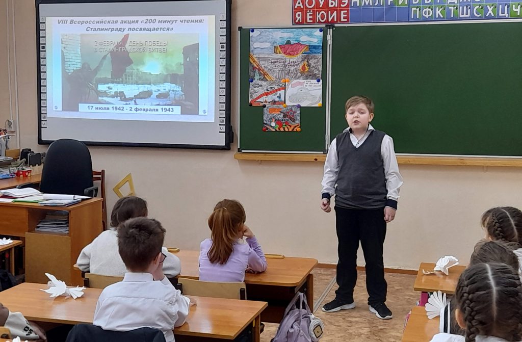 Для участия в патриотических мероприятиях были приглашены учащиеся начальных и пятых классов кузнецких школ. Библиотекари для ребят провели уроки памяти «Нам подвиг Сталинграда не забыть» и историко-литературные чтения «200 огненных дней».