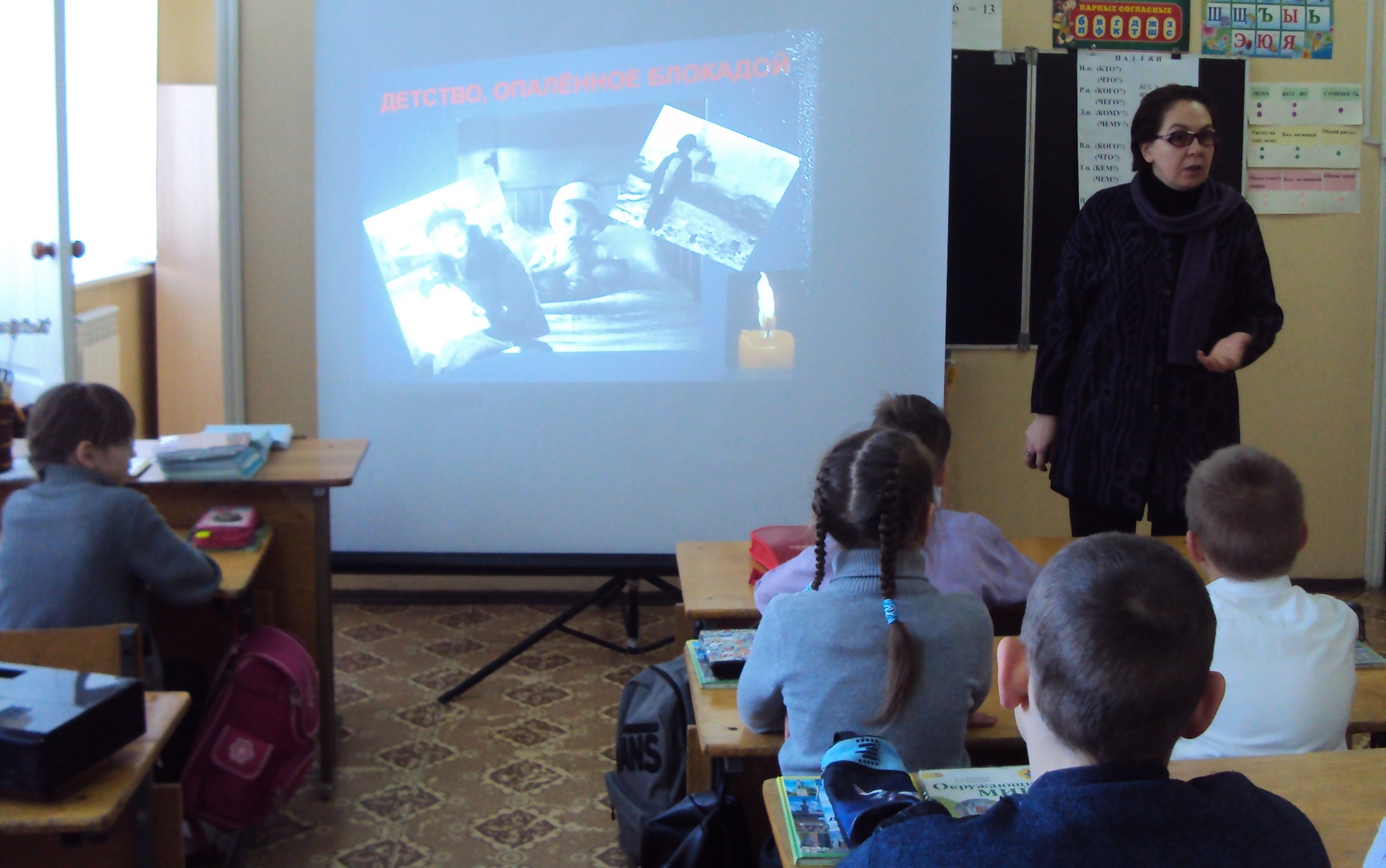 Сотрудники детской библиотеки для учащихся нескольких школ города провели урок мужества «Детство, опалённое блокадой». Ребята узнали о жизни маленьких героев Ленинграда, работавших на заводах, наравне со взрослыми, дежуривших и тушивших зажигательные бомбы на чердаках, ухаживавших за ранеными… Школьники с замиранием сердца слушали странички из дневника 11-летней Тани Савичевой. Её дневник стал одним из символов осаждённого города. Никого не оставили равнодушными кадры документальной хроники о детях блокадного Ленинграда.