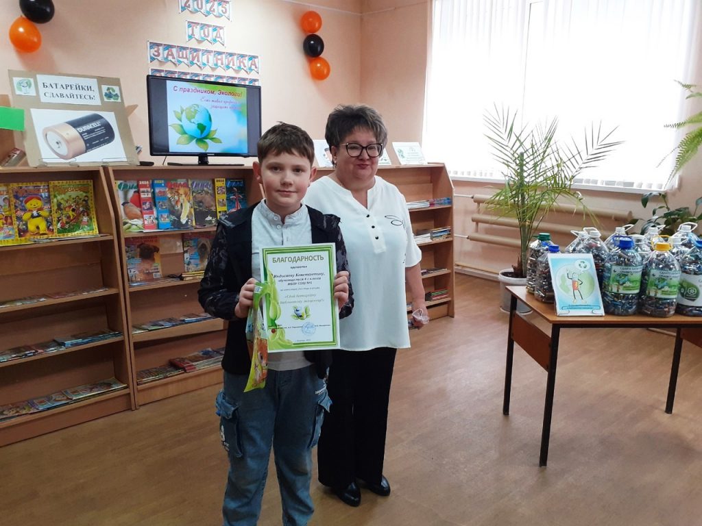 Благодарственными письмами администрации МБУ «Кузнецкая ЦГБ им. А.Н. Радищева» и сладостями от депутата Собрания представителей города Кузнецка Н.И. Сафонова награждены волонтёры гимназии № 9, городская станция юннатов, самые активные классы школы № 5. Среди отличившихся участников – коллектив центральной городской библиотеки им. А.Н. Радищева, Полина Васильева и Арина Корнеева (детский сад № 2), Николай Мазнюк (школа № 8), Аблаев Александр, Екимчева Виктория, Захаров Егор, Индисаев Константин, Ларина Злата, Смурова Мария (школа № 5), участники клуба «Надежда» В.П. Агальцова, Н.А. Салмина и В.В. Самчук. Наибольшее количество батареек (358,6 кг) собрали посельские школьники во главе с педагогами И.В. Янюшкиной и Е.В. Астаховой.