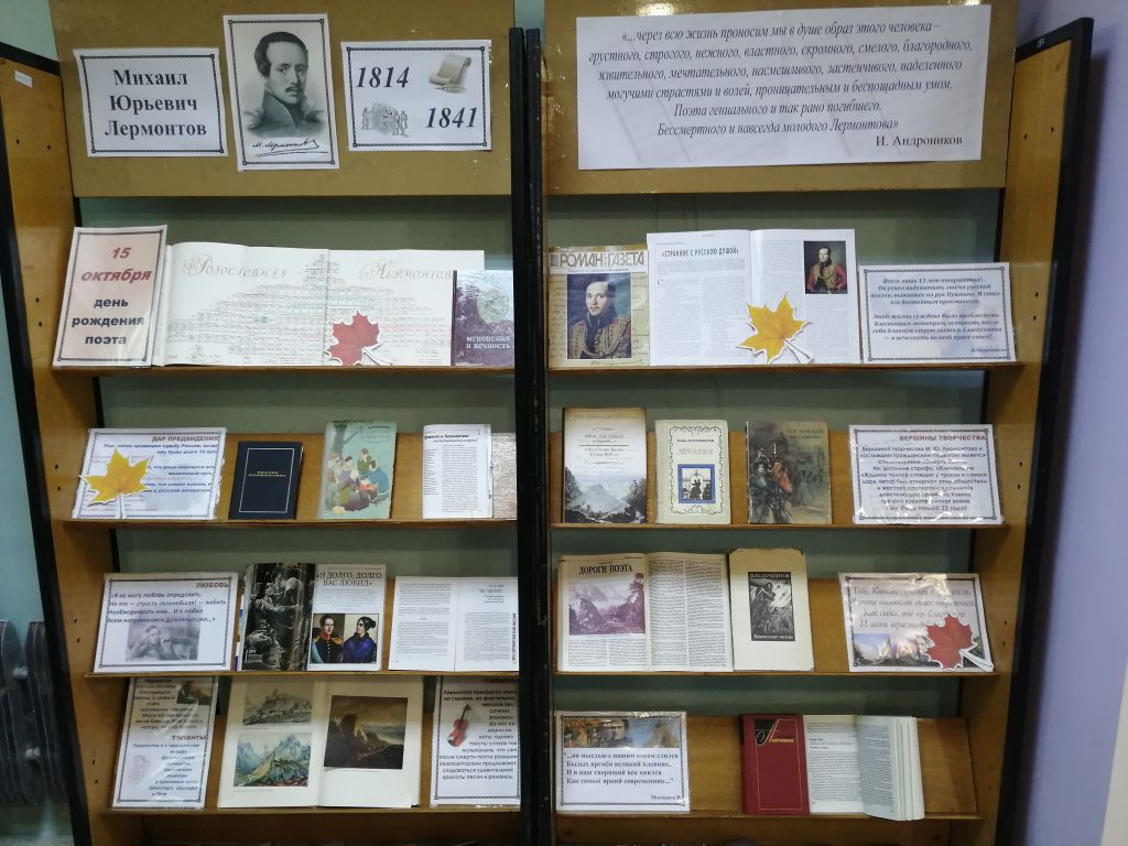 На выставке представлена литература, повествующая о жизни поэта и его творчестве, воспоминания современников, письма самого поэта и его друзей. Целый ряд журнальных статей посвящён единственной настоящей любви Михаила Юрьевича. Не останется без внимания и сборник известного в нашей стране лермонтоведа Ираклия Андроникова.